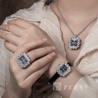 थोक कस्टम ब्लिंग क्वार्ट्ज वर्ग जिरकॉन पेलेंट हार महिलाओं के लिए ब्रेसलेट स्टेनलेस स्टील केस रिंग घड़ी